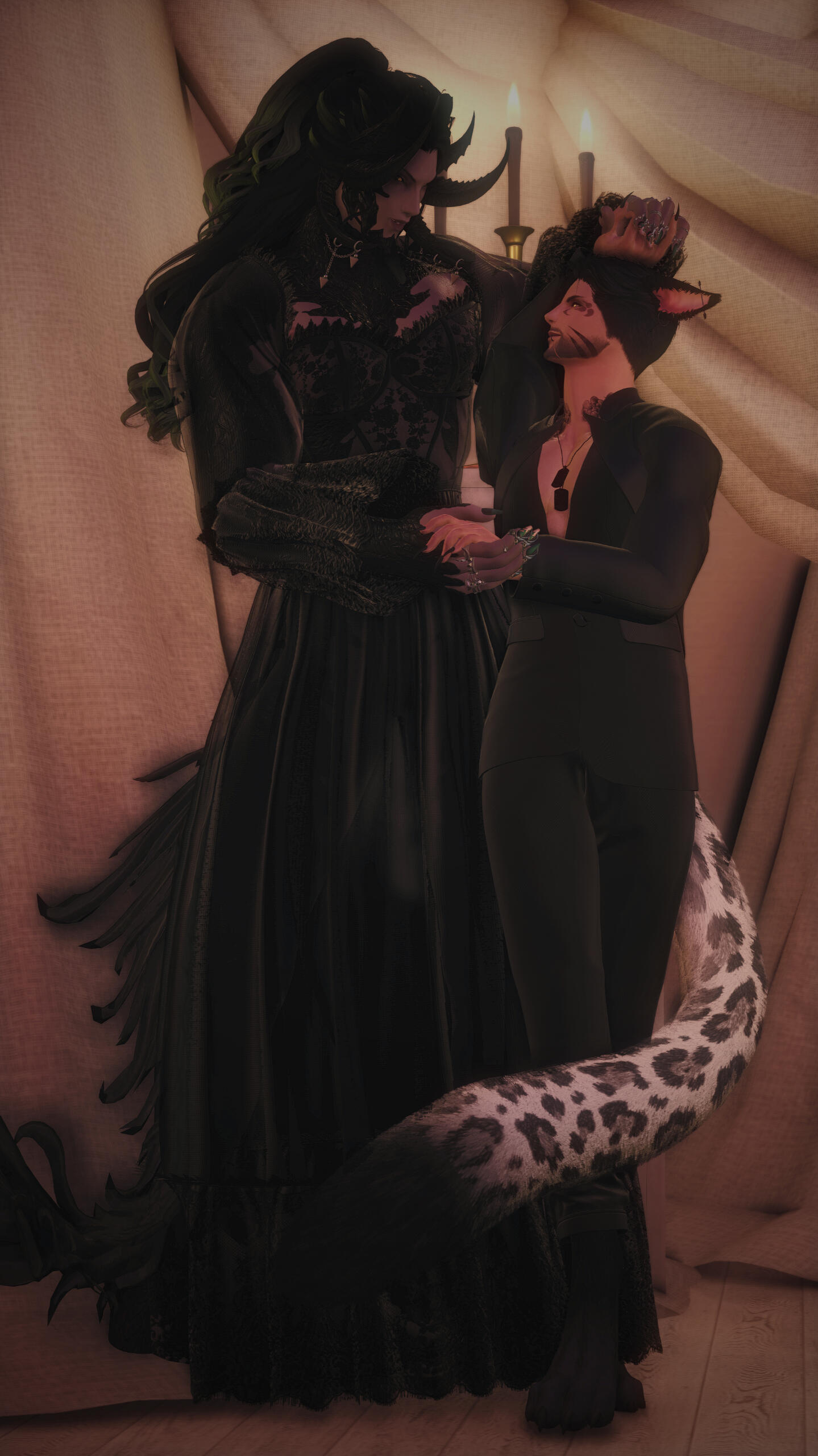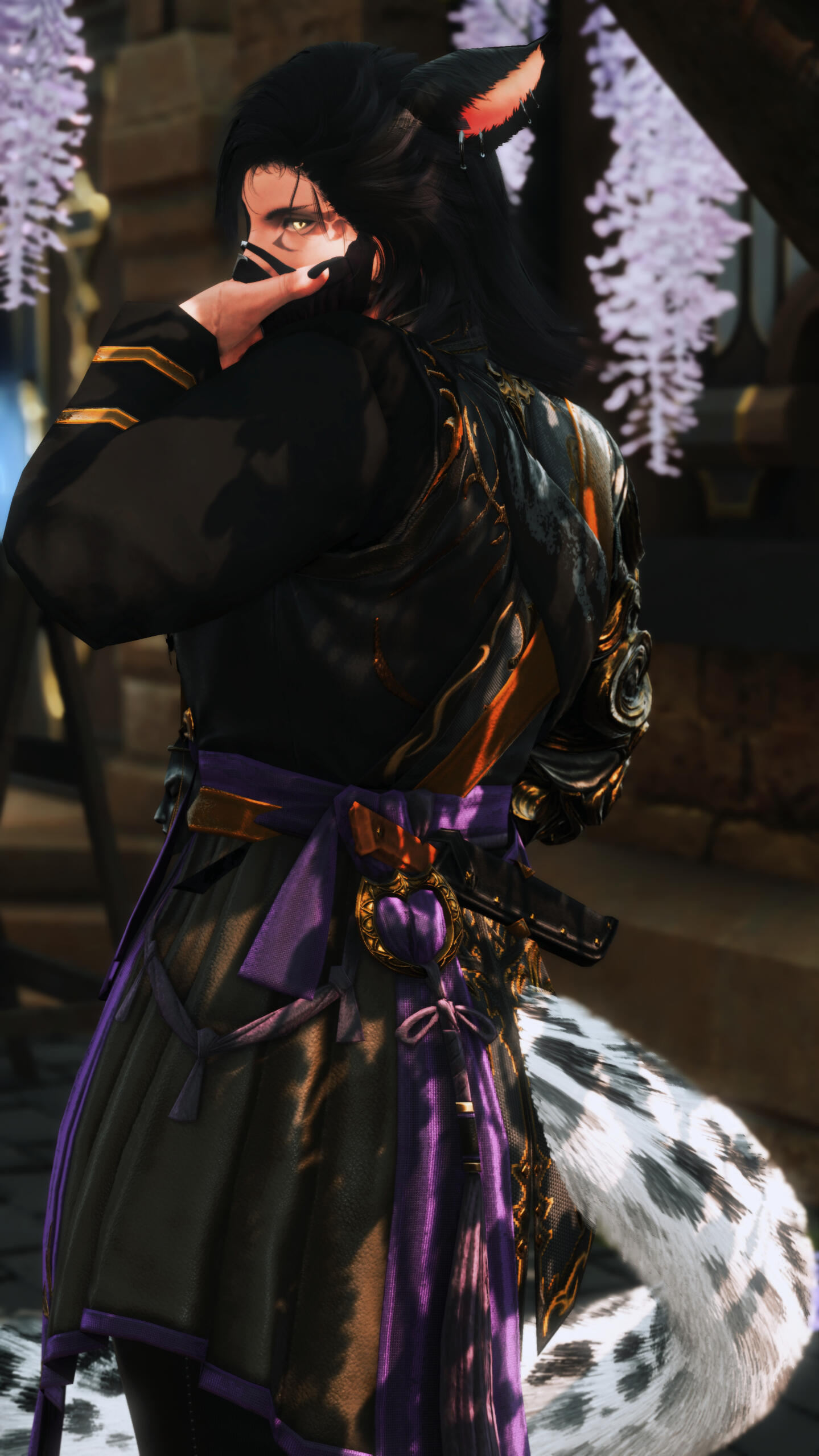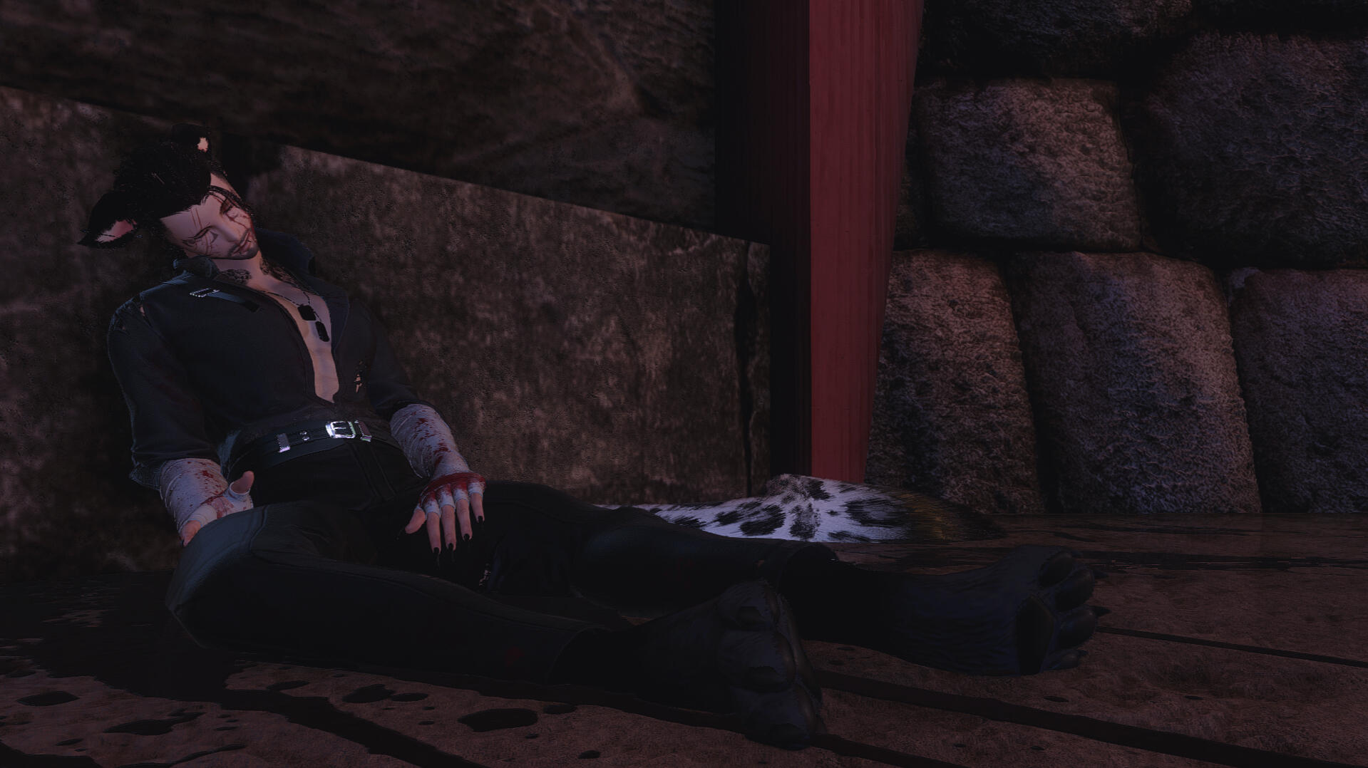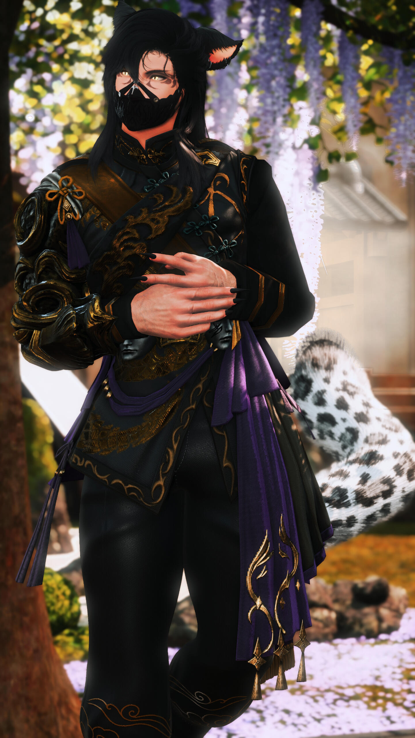 BIOGRAPHY. A young snow leopard of 6 moons forced from home when garlean invasions had taken doma, with memories of childhood ripped away and replaced with gunfire, volatile flames and the copper scent of sanguine blood. onto a boat on course for the ports of kugane, d'evali was to survive with no survival skills and to raise himself; shaking, scared and alone.at adolescence, he was running along rooftops and jumping between each building of the othardian port city, like a shadowed blur. an empathic nature blossomed from the elders that reside, it was the only sense of guidance d'evali had besides his own skill and wit, becoming one with the crowd to survive; a streetrat. The orphan doman would do oddjobs and the like to keep himself fed; besides stealing and doing favors. The first swipe of a blade bought to learn further defense, only started a bigger, much more dangerous route of life. That first assassination, had birthed the fledgling mercenary taking Kugane by storm, solely known as V.